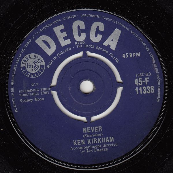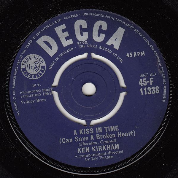 03 61....45-F 11338....KEN KIRKHAM accompaniment directed by IAN FRASER..A Kiss In Time (Can Save A Broken Heart) (CP.2280)/Never (CP.2281)