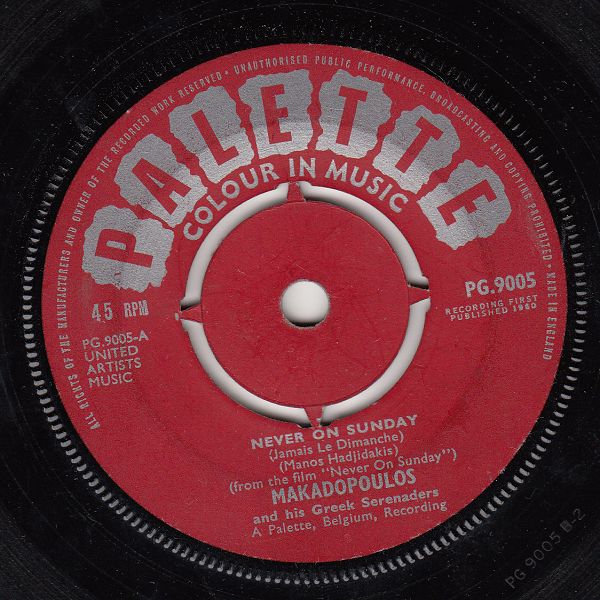 10 60....PG.9005....MAKADOPOULOS and his Greek Serenaders..Never On Sunday (Jamais Le Dimanche) (PG.9005 A)/Yasou (PG.9005 B) (B: PALETTE 40038/40039)