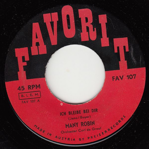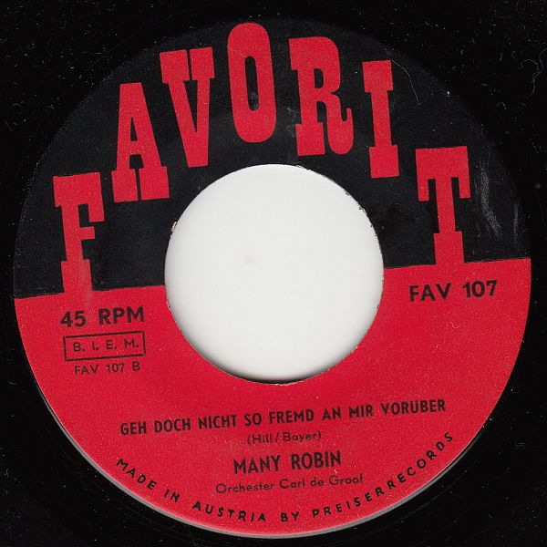 Wer war Many Robin? Er dürfte ein Österreicher, vielleicht sogar ein Wiener (gewesen) sein, da seine einzige mir zur Zeit bekannte Single aus dem Jahre 1960 von dem wiener Label-Besitzer Otto G. Preiser "gemacht" wurde.