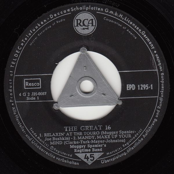 .............47-3898-A….Muggsy Spanier and his Ragtime Band Muggsy Spanier, Cornet; Geo. Brunies, Trombone; Rod Cless, Clarinet; Nick Caiazza, Ten. Sax; Joe Bushkin, Piano; Bob Casey, Bass; Don Carter, Drums..Relaxin' At The Touro (20-3898-A)/-B….Muggsy Spanier and his Ragtime Band Muggsy Spanier, Cornet; Geo. Brunies, Trombone; Rod Cless, Clarinet; Nick Caiazza, Ten. Sax; Joe Bushkin, Piano; Bob Casey, Bass; Al Sidell, Drums..Mandy, Make Up Your Mind (20-3898-B)