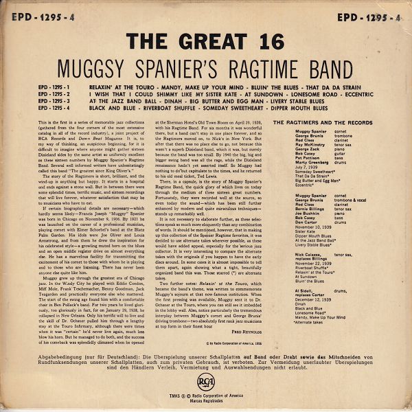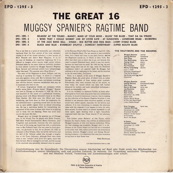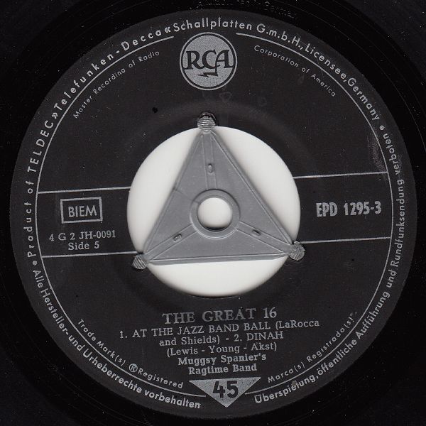 .............47-3895-A….Muggsy Spanier and his Ragtime Band Muggsy Spanier, Cornet; Geo. Brunies, Trombone; Rod Cless, Clarinet; Bernie Billings, Ten. Sax; Bob Casey, Bass; Joe Bushkin, Piano; Don Carter, Drums..At The Jazz Band Ball (20-3895-A)/-B….Muggsy Spanier and his Ragtime Band Muggsy Spanier, Cornet; Geo. Brunies, Trombone; Rod Cless, Clarinet; Ray McKinstry, Ten. Sax; Pat Pattison, Bass; Marty Greenberg, Drums; Bob Casey, Guitar; George Zack, Piano..Big Butler And Egg Man (20-3895-B)