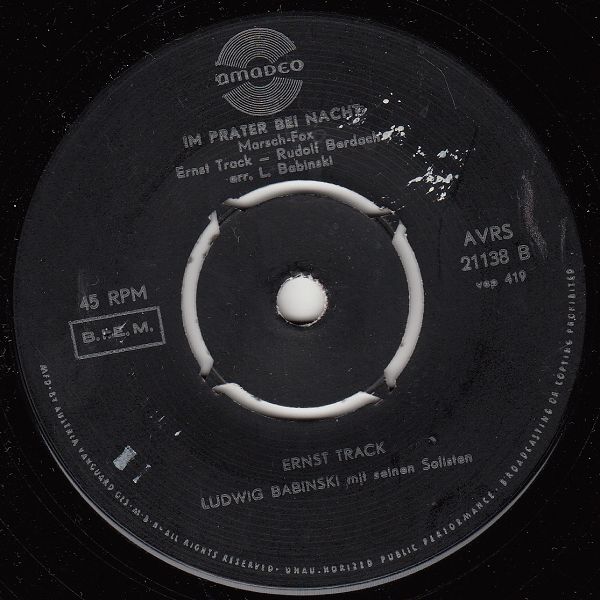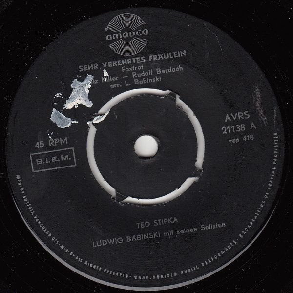 ?? 59....AVRS 21138 A....TED STIPKA LUDWIG BABINSKI mit seinen Solisten..Sehr verehrtes Fräulein/ B....ERNST TRACK LUDWIG BABINSKI mit seinen Solisten..Im Prater bei Nacht