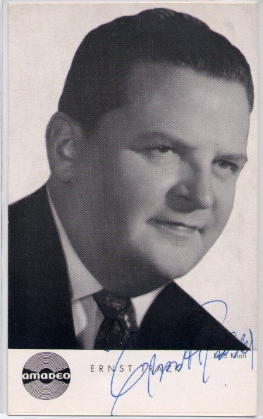 Der Kabarettist und Komponist Ernst Track wurde am 20. Jänner 1911 in Wien, Österreich, geboren und verstarb am 17. April 1987 ebenda. Er erlernte den Beruf des Kaufmannes nützte aber seine musikalischen Begabungen und bildete sich auf diesem Gebiet weiter, indem er Privatunterricht in Harmonielehre nahm und mehrere Instrumente wie Klavier, Gitarre etc. erlernte. Seine musikalische Karriere begann er 1930 mit der Begleitung von Laiendarstellern am Klavier. Bald machte er sich aber als Klavierhumorist und Conférencier selbständig, wobei er sich seine Couplets größtenteils selbst schrieb. Er erwarb sich auch Verdienste um die Pflege des Wienerliedes, auch als Komponist, und erhielt dafür 1970 das Ehrenzeichen der Republik Österreich in Silber und 1980 in Gold. Der Ernst-Track-Weg in Wien-Donaustadt wurde nach ihm benannt.