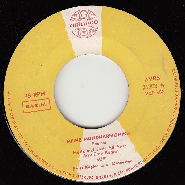 ?? 60....AVRS 21203 A....SUSI Ernst Kugler u. s. Orchester..Meine Mundharmonika/ B....Ich kann die Tante Mali halt nicht leiden