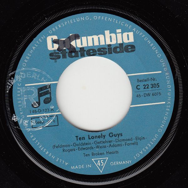 Sie schrieben nicht nur diesen Titel, sondern sie interpretierten ihn als "Ten Broken Hearts" auch auf DIAMOND 123 selbst, wobei man bei den diversen Dokumentationen das Gefühl hat, dass die Mitwirkung aller zehn Songwriter beim Gesang nicht so recht geglaubt wird. Jedenfalls erreichte "Ten Lonely Guys" in der Interpretation von Pat Boone die Top 50. Die Original-Interpreten hatten keinen Charts-Erfolg.