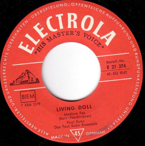 Living Doll von Cliff Richard ist gerade keine Seltenheit. Die deutsche Coverversion von Paulchen Kuhn schon eher. Das Bildcover ist klasse und Paul's Translation ist es auch. Living Doll von Cliff Richard ist hier als südamerikanisches EP-Cover zu bestaunen.