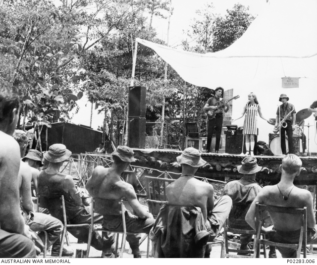 Amphlett left school three months before her 15th birthday to focus on her singing career. She released further singles over the following two years, scoring a number of hits, making regular appearances on shows like Bandstand and Sing, sing, sing, and winning the Best Australian Female Vocalist award in 1965. By 1966 she was among Australia's most popular performers. Having made one of several attempts to drop the 'Little' from her name, Pattie became, at 17, the youngest Australian entertainer to perform in Vietnam. She was performing at the Australian base at Nui Dat on the night of the Long Tan battle. Some soldiers recall having heard snatches of music as they headed out on patrol in the hours before the fight.