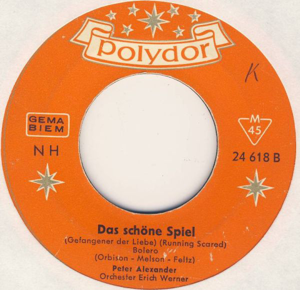 Der schmalzige Peter Alexander gehört nun gerade nicht in die Rubrik Rock'n Roll Heroes. Aber manchmal kommt man doch aus dem Staunen nicht heraus. Ricky Nelson's "Travelin' man" und Roy Orbisons "Running scared" dienten als Vorlage. Die Polydor Single 24618 (1963) von Peter Alexander bietet beides, deutsch gesungen. Außer dem schönen Bildcover gibt es noch die Originale zu sehen, jeweils seltene US-Pressungen.