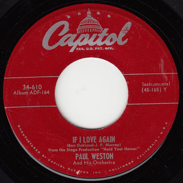 05 49....34-610....Album ADF-164….PAUL WESTON And His Orchestra..If I Love Again (45 165) Y/Rain (45 166) Z