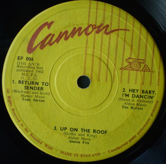 Auch im Vereinigten Königreich gab es und gibt es vielleicht noch immer eine Reihe von Kaufhaus-Labels, sogenannte Bargain-Records, wenn ich mich nicht irre, wie zum Beispiel CANNON, welches die gängigen Titel mit Interpreten meist unter Pseudonym auf EPs mit jeweils drei Titel pro Seite veröffentlichte. Wie den Meisten von uns wohl bekannt, wurden auch bei uns manchmal Kaufhaus- oder Billig-Labels als "Voll-Label" vermarktet, wie beispielsweise ARIOLA mit EMBASSY und auch das italienische Label VARIETY übernahm Titel des britischen Kaufhaus-Labels CANNON in den Vollpreis-Katalog. Da zufällig durch die Ravers (links klicken) das britische CANNON-Label in unserem Forum auftauchte, möchte ich es hier kurz vorstellen.