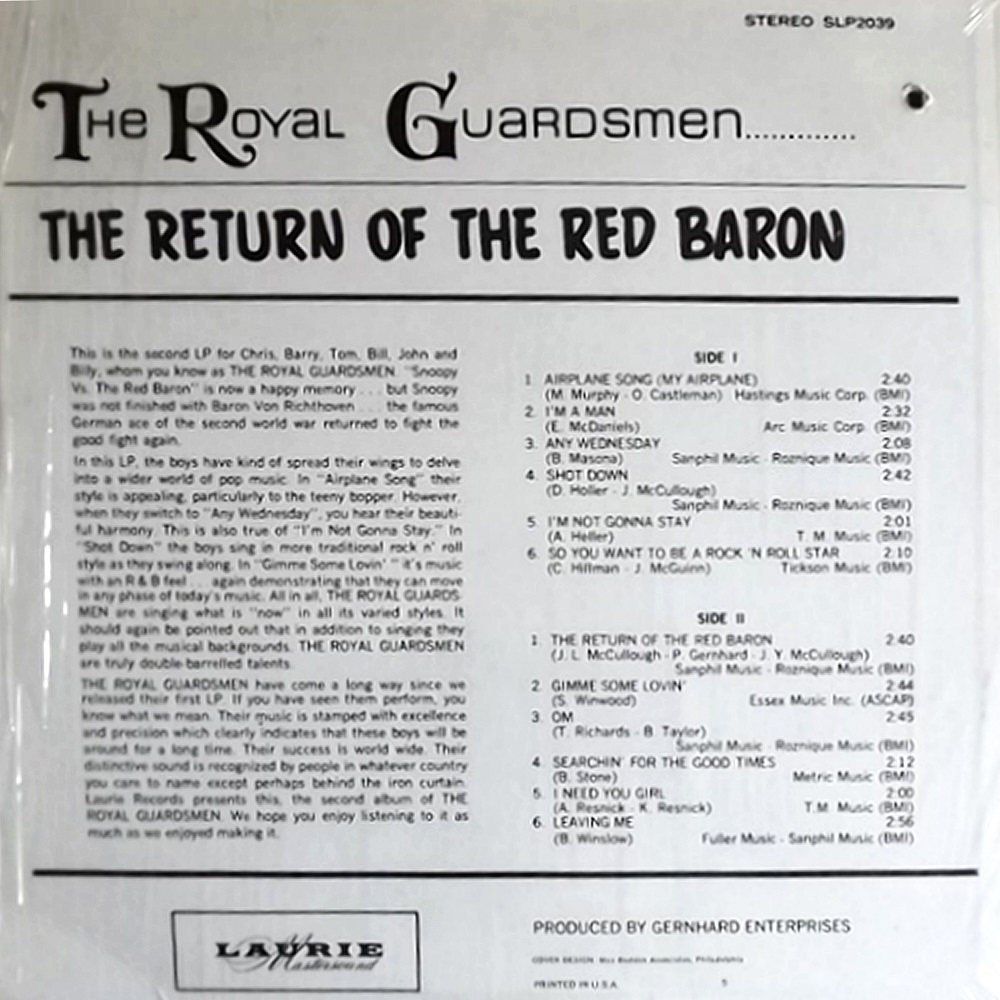 In den Songs der Royal Guardsmen ging es ab und zu über das Thema Fliegerei und über den Peanuts Charakter Snoopy den Hund.