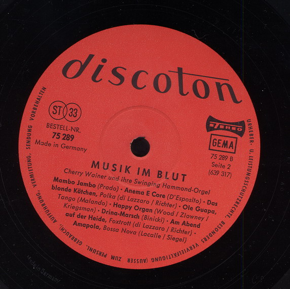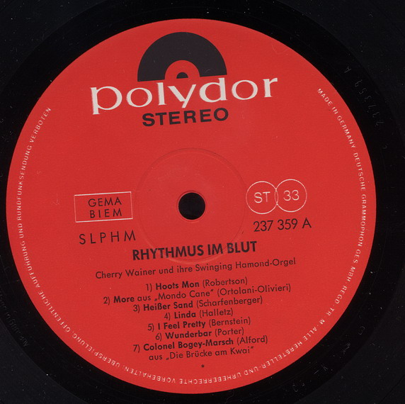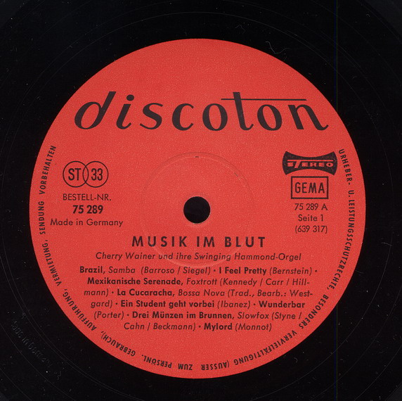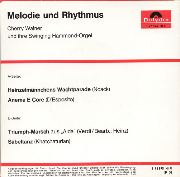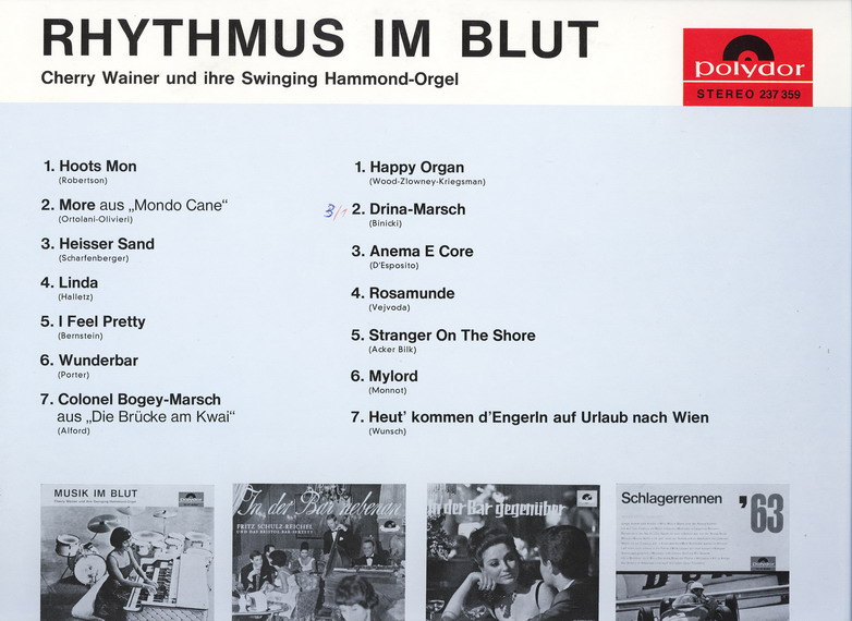 Alle Titel sind Instrumental von Cherry Wainer mit ihrer "Swinging Hammond-Orgel" gespielt.