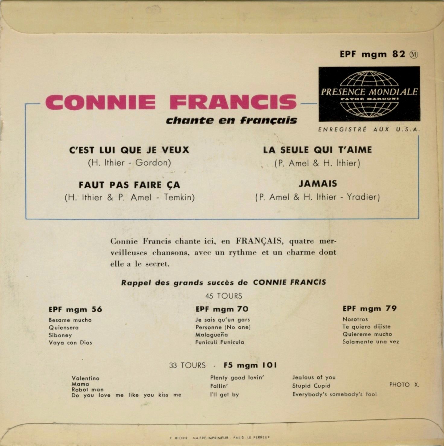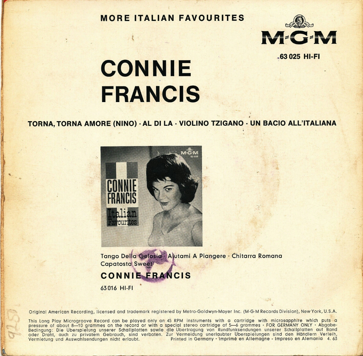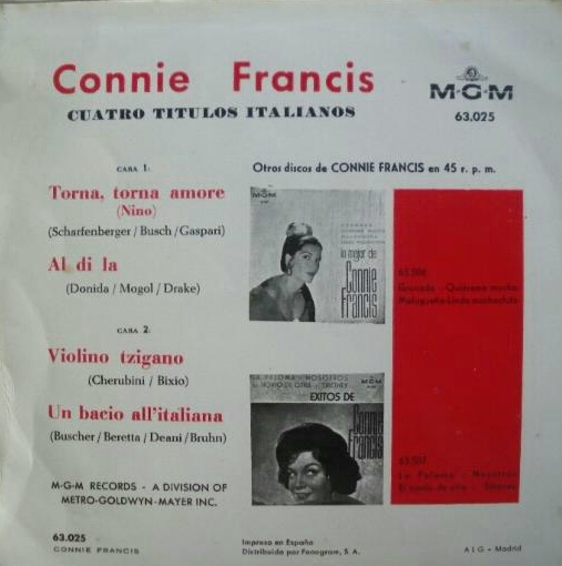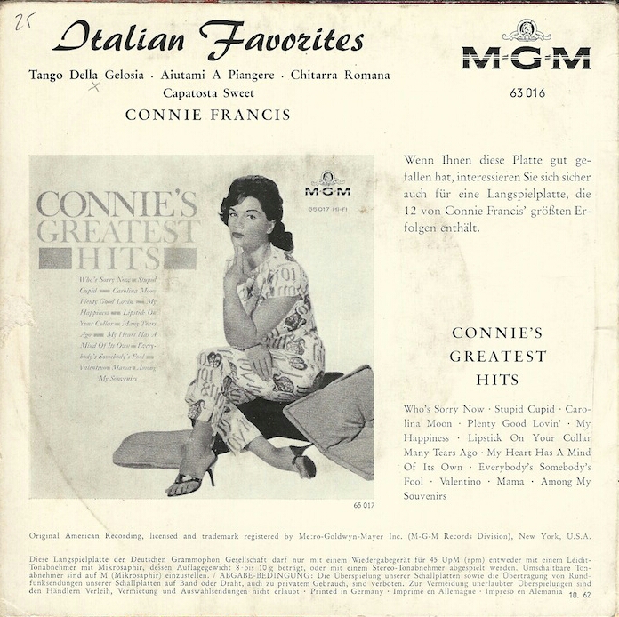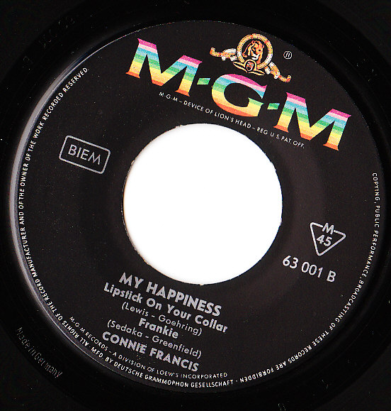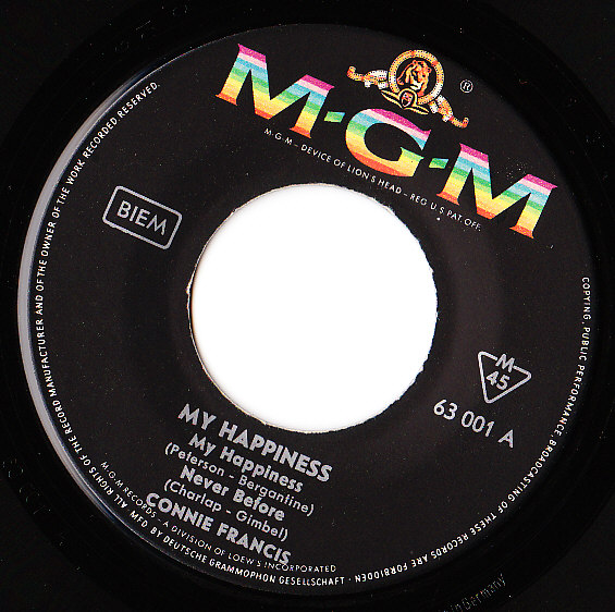 hallo zusammen habe heute die erste connie francis ep mgm 63001 my happiness mit den titeln my happiness,lipstick on your collar,frankie,never before keep rockin' albert