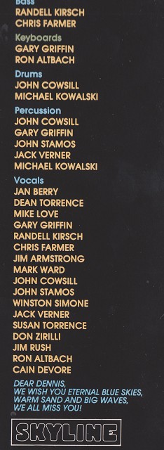 von der Beach Boys Touring Band war 1977-78 mit Dennis im Studio und hat