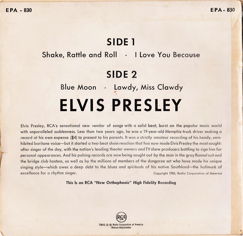 Das eine und ich bezeichne es als erstes Cover, ist etwas größer mit einer anderen Beschriftung, unten (RCA Logo) mit dem ab 1958 S4 Label