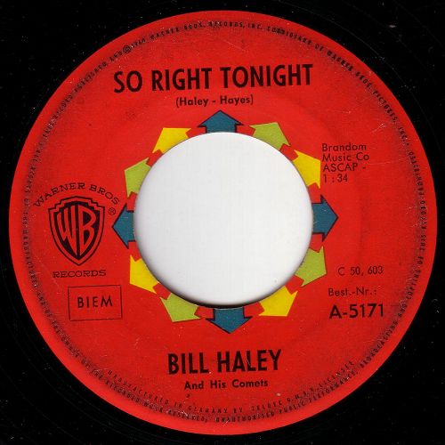 Da das Thema "Bill Haley auf WARNER BROS." heißt, kommen jetzt alle vier Singles, die WARNER BROS. von Bill veröffentlicht hat. Drei als TELDEC- und die vierte als US-Pressung. Nach meinem derzeitigen Wissensstand gab es seine vierte Single nicht auf TELDEC. Sollte die 5228er jemanden als TELDEC-Pressung bekannt sein bitte melden, am besten gleich mit Scan.