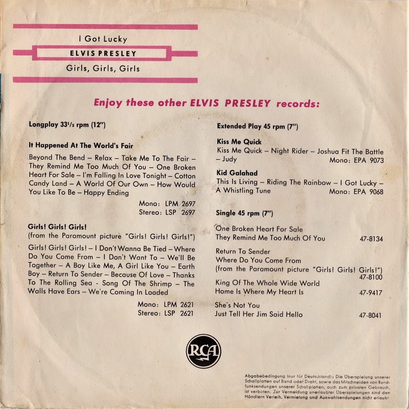 die 1963 veröffentlichte (47-9459) die nur für Dänemark hergestellte Singel im Little Sister Cover (47-7908)