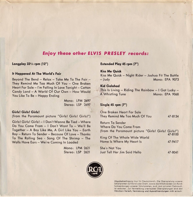 die Platte 47-9466 wieder im Little Sister Cover diesmal nur für die Auslieferung nach (Finnlang) hergestellt.