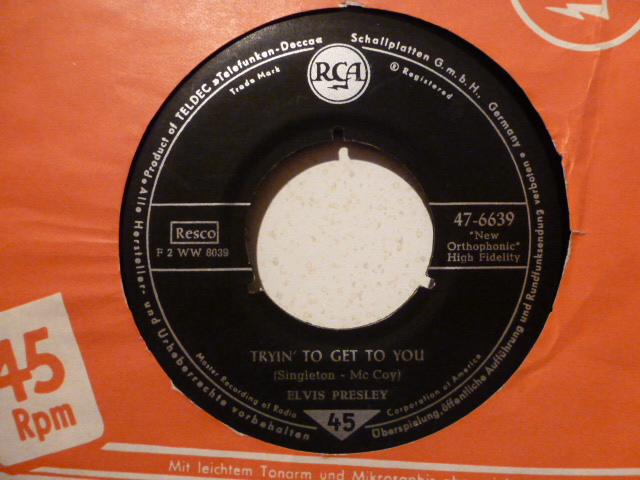 Meine Elvis Single: Tryin´ to get to you - I love you because, 47-6639, ist es S-2 Label, kleines RCA-Logo und links und rechts kurze Texte. Platte hat ein paar wenige Haarlines spielt aber sehr gut durch, Tri fehlt mir leider.