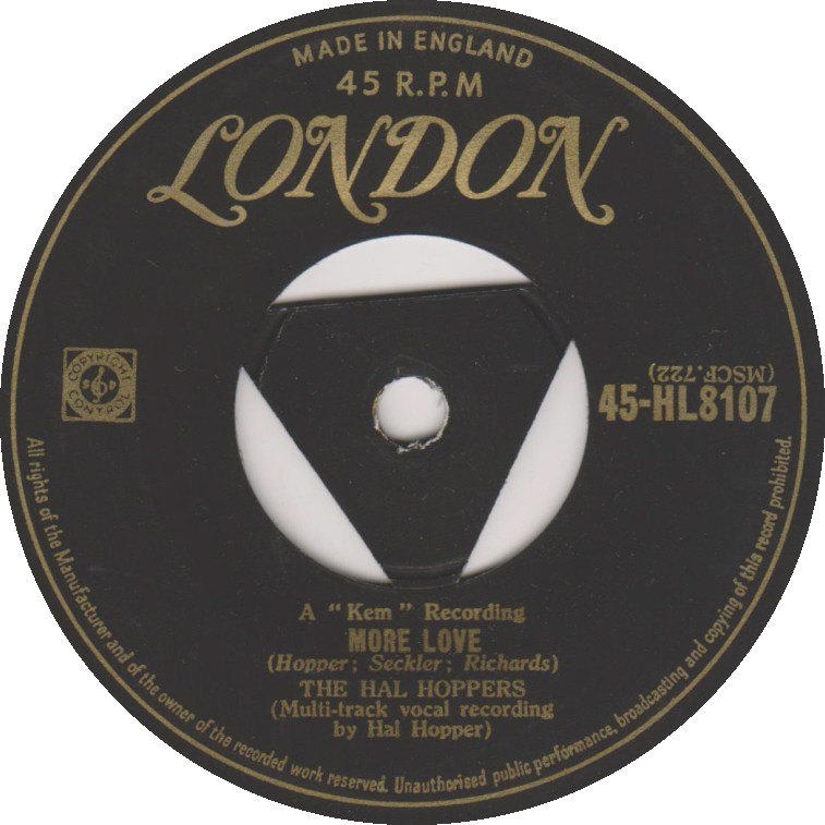 07 54....45–2733....THE HAL HOPPERS..More Love (HBR 102—45)/Do Nothin’ Blues (HBR 103—45)