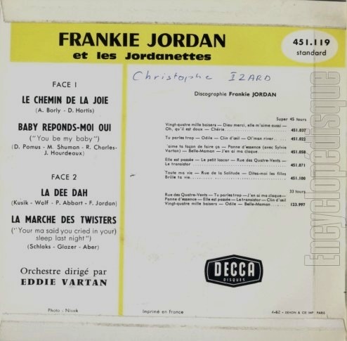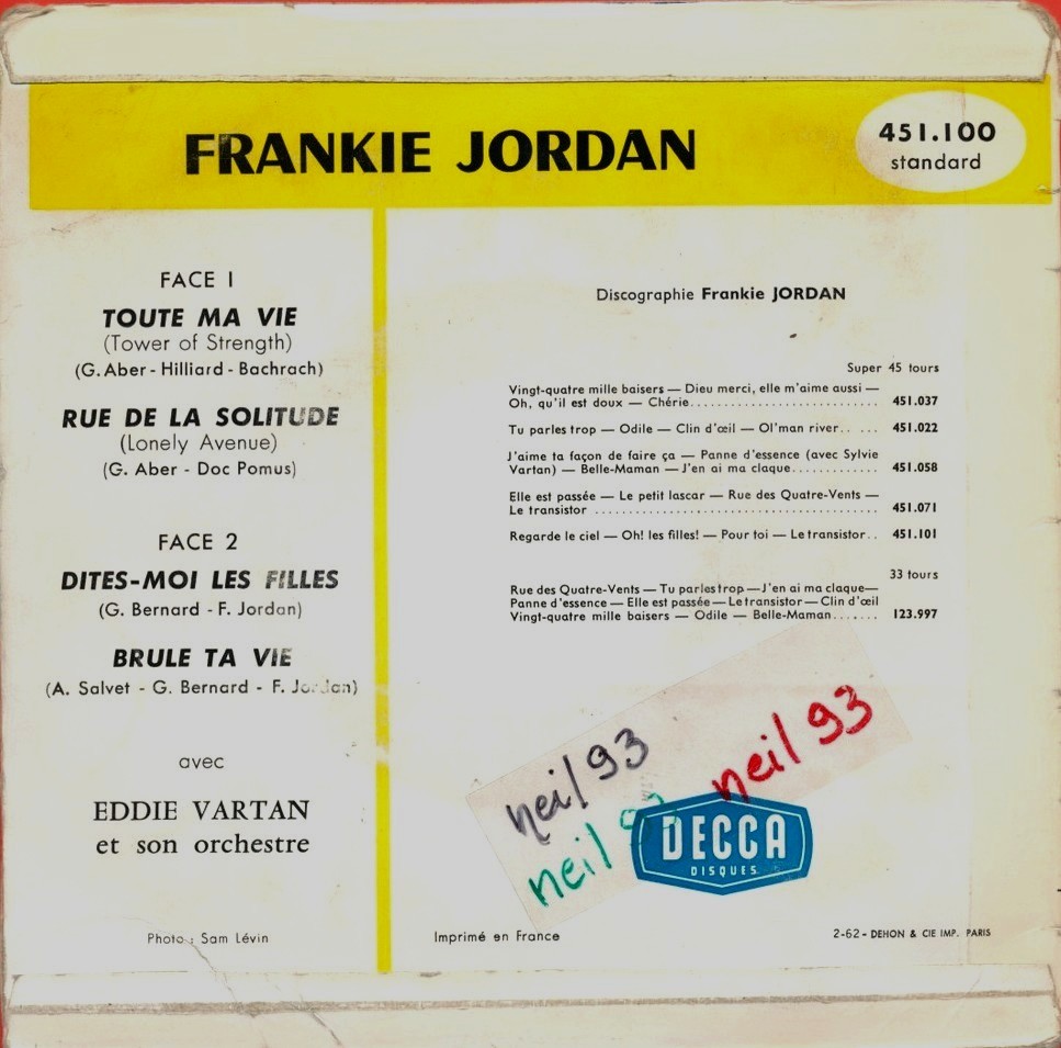 Frankie Jordan, dessen richtiger Name Claude Benzaquen ist, ist einer der Pioniere des französischen Rocks, geboren am 19. Juli 1938 in Oran (Algerien).