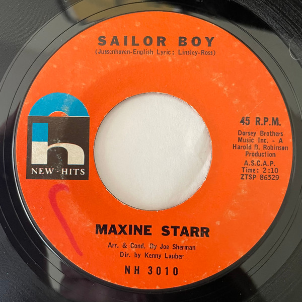 11 62....N H 3 0 1 0....MAXINE STARR Arr. & Cond. By Joe Sherman Dir. by Kenny Lauber..Sailor Boy (ZTSP 86529)/Theme From Taras Bulba (The Wishing Star) (ZTSP 86503)