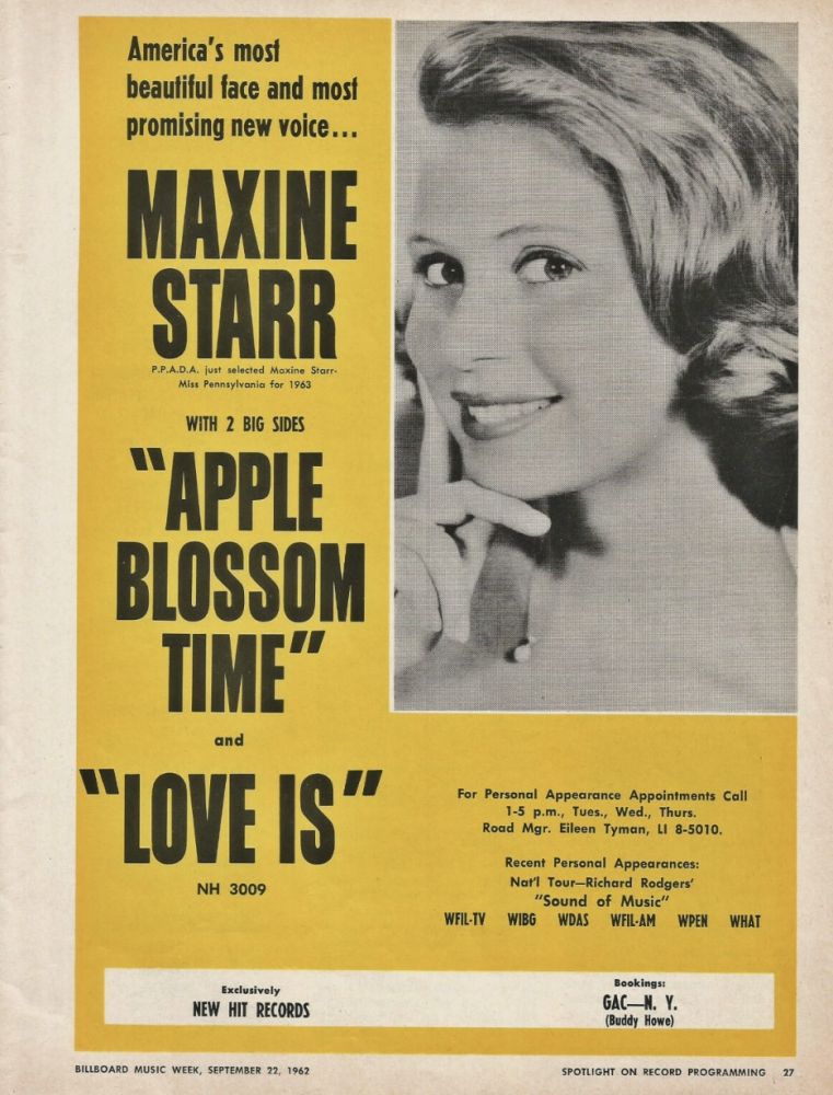 Die Teeniesängerin Maxine Graboyes, vermutlich aus Colorado, brachte im Jahre 1962 als Maxine Starr zwei Singles auf den Markt und danach war es wieder still um sie. Seit September 2005 ist sie Voice Teacher in ihrem “Maxine's Singing Studio” in Eagle, Colorado.