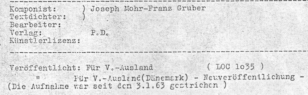 Die 47-9279 White Christmas erschien 1963 noch einmal, es gibt eine CI dazu, sie wurde hergestellt für Dänemark, die auch ein Cover dazu hatten. Die gab es wohl nie bei uns. Ich möchte gerne wissen, ob in der Auslaufrille – Made In Germany - steht oder nicht.