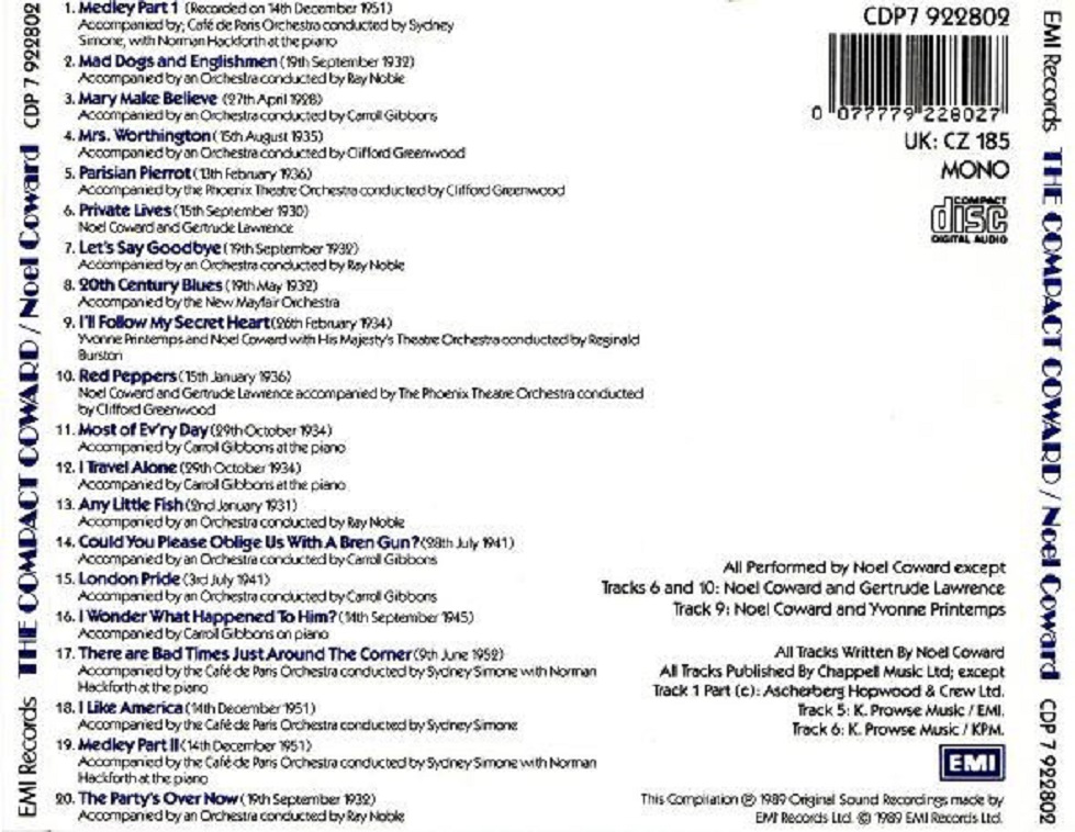 Born December 16, 1899 in Middlesex, England, Coward was the product of a musical family; his grandfather was the organist at the Crystal Palace, while his father was a piano tuner. He began his professional career as a child actor, and in 1913, while travelling with a production of Hannele, he met a girl named Gertrude Lawrence who would continue to exert a profound influence over his life and career, becoming both the inspiration behind and the star of many of his greatest works. After appearing in 1918 in the D.W. Griffith film Hearts of the World, Coward began writing plays and eventually turned to songwriting; in 1923, his "Parisian Pierrot" was performed by Lawrence in the revue London Calling!, becoming his first hit, and a year later his drug-addiction drama The Vortex was a controversial smash before moving to Broadway.