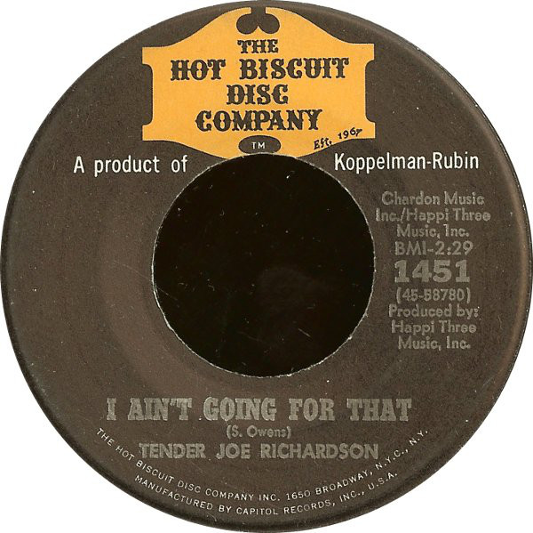 01 68....1451....TENDER JOE RICHARDSON..I Ain't Going For That (45-58780)/Hip Huggin' Mini (45-58484)