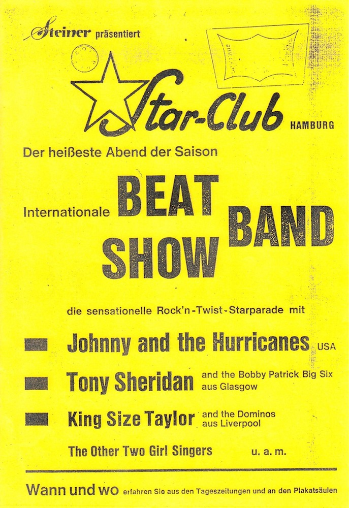 "Die letzten großen Erfolge der Instrumental Combo Johnny & The Hurricanes liegen schon etwas länger zurück. Sie sind mit "verrockten" amerikanischen Volksliedern berühmt geworden. Allerdings tritt Bandleader und Saxophonist Johnny Paris mit komplett umbesetzter Mannschaft in Hamburg an. Am 22. Dezember 1962 nimmt Manager Don Arden 16.000 DM für die Herren Paris, Field, Drake, Marst und Connel in Empfang und am 1. Januar 1963 weitere 8.000 DM. Das erste Gastspiel dauert 19 Tage. Man wohnt im Hotel am Hafen. Insgesamt spielen Johnny & The Hurricanes 36 Tage lang im ehemaligen Stern-Kino, und zwar nicht nur die bewährten Instrumentals, es wird auch gesungen."