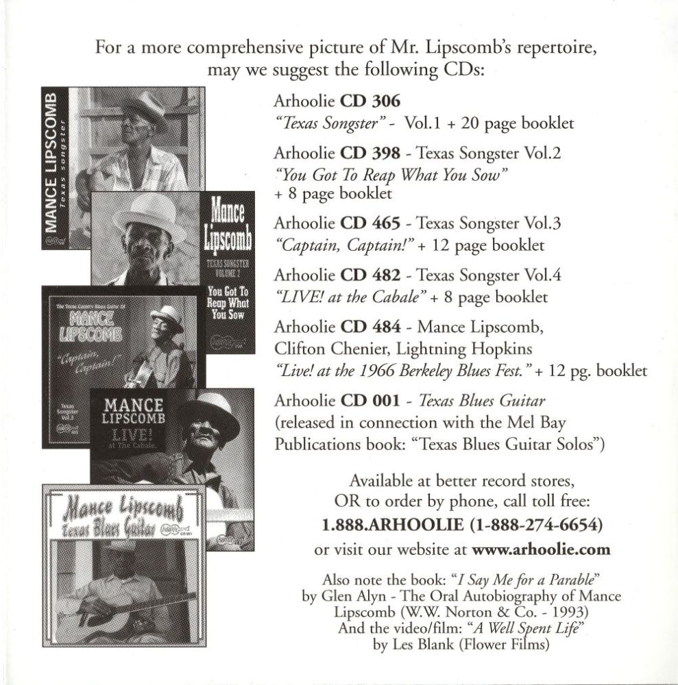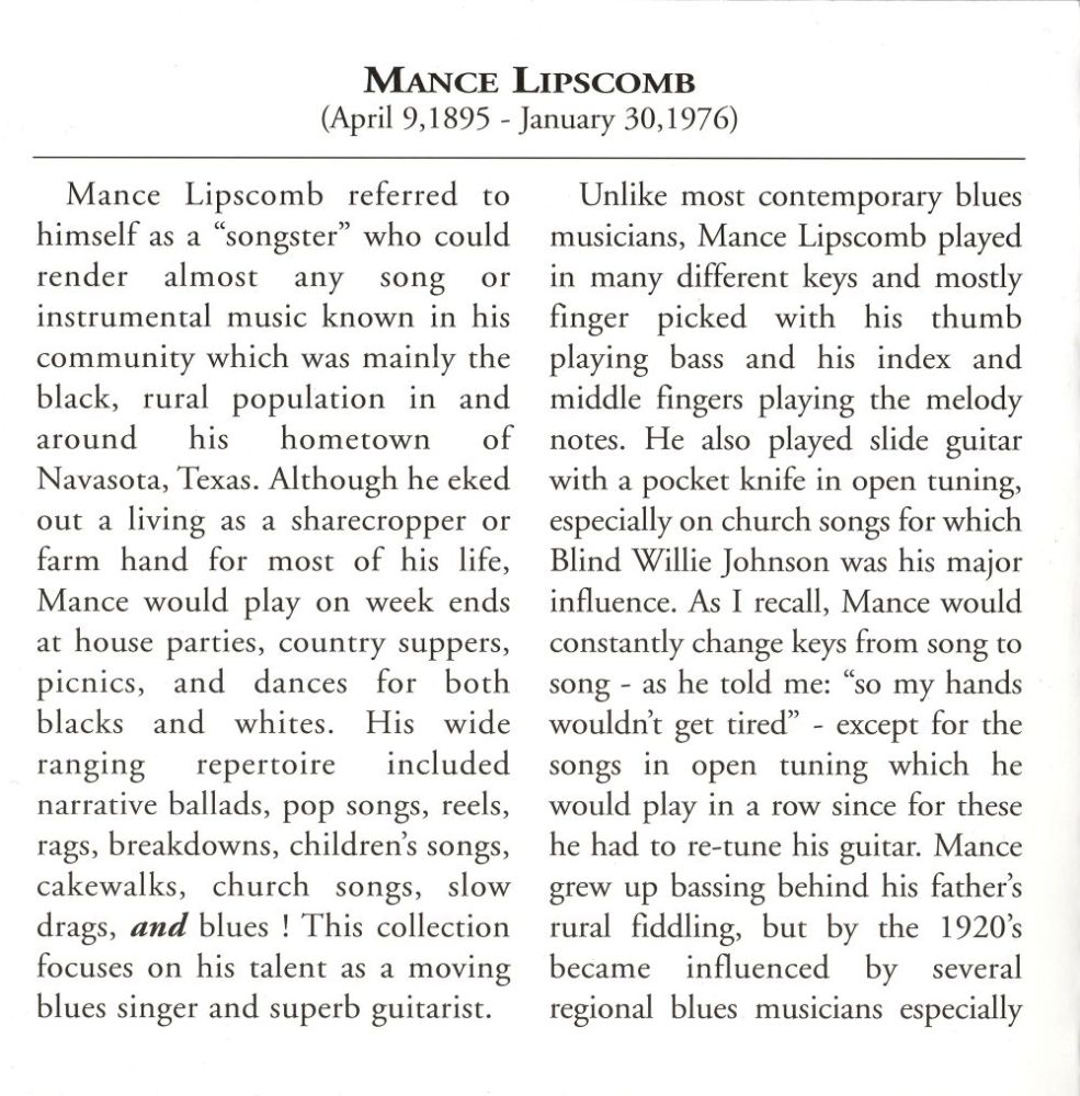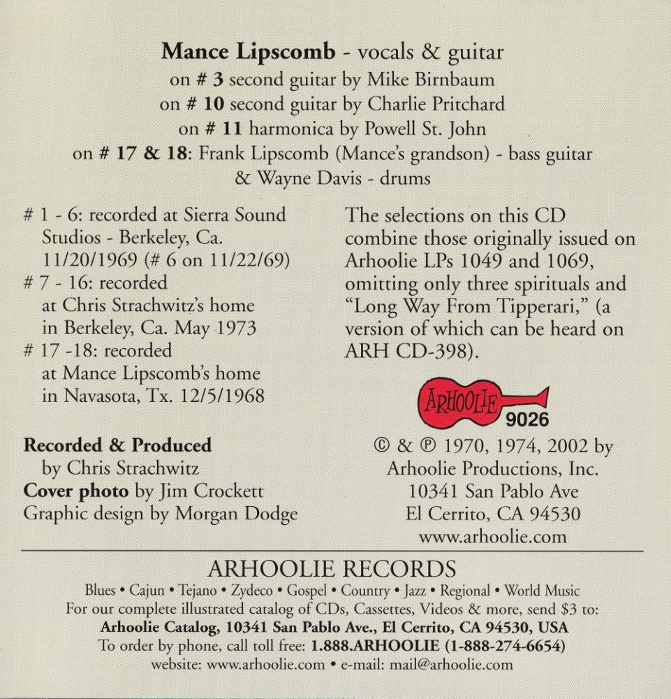 | Information: | MANCE LIPSCOMB ARHOOLIE LP F-1001 |