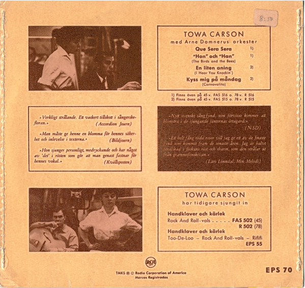 ändern, denn TOWA war in Schweden seit 1956 auf RCA Victor aktiv