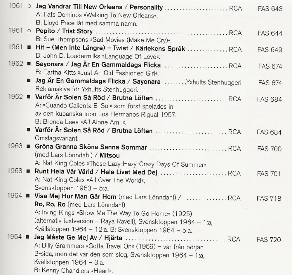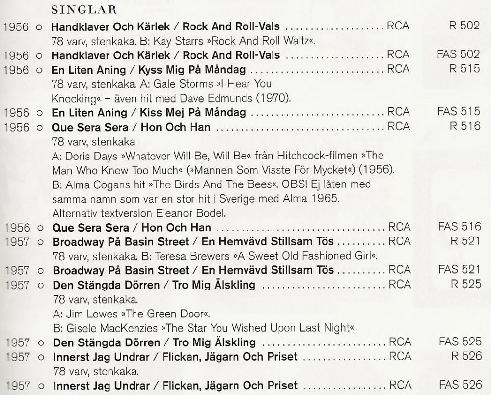 und nahm viele Rock'n'Roll-Songs in schwedischer Version auf. Sie war