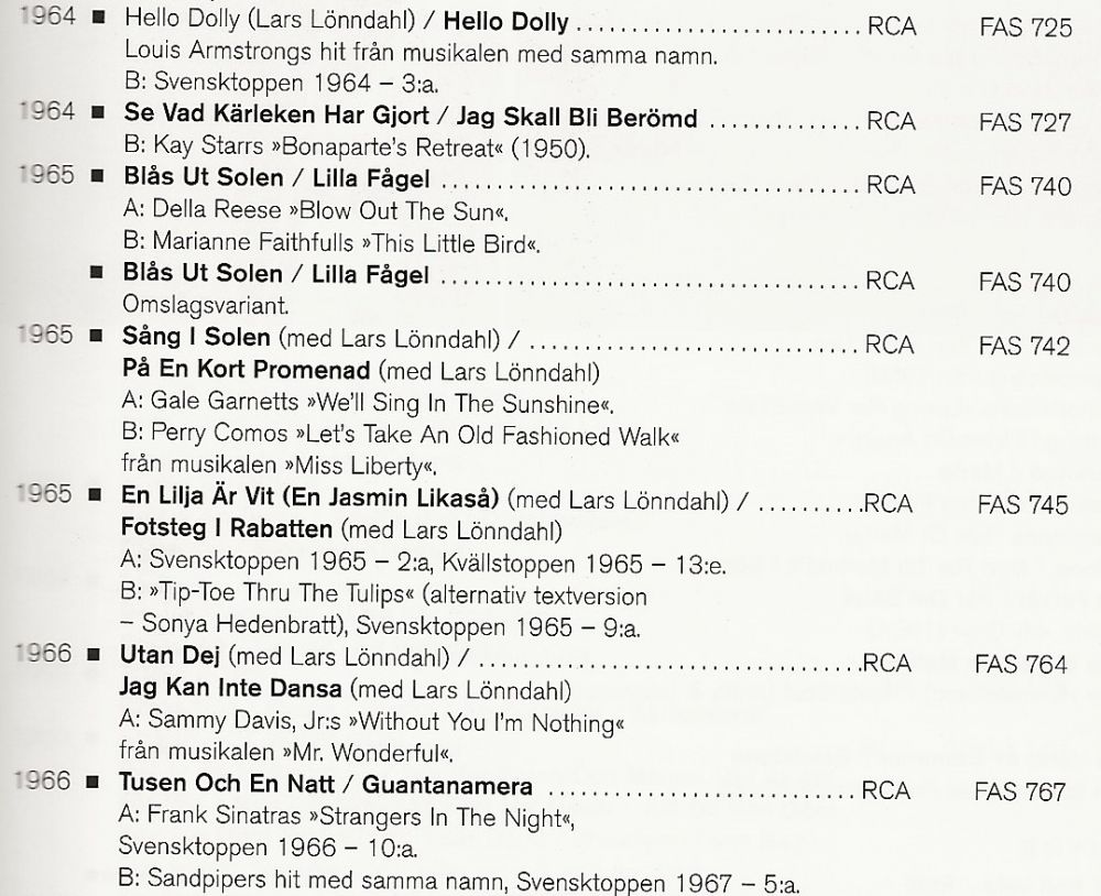 Schweden, geboren. Schon am 16. März 1956 nahm sie ihre erste RCA