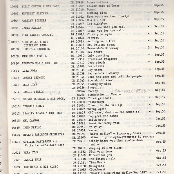 Ronnie Height ist unerklärbar und daher leicht zu erklären -klingt des irr? -, denn es war ein ganz banaler Irrtum. Für die DORÉ 516 von Ronnie Height gab es bereits die LONDON-Matrixnummern MSF.3347 bzw. MSF.3348 und die verirrten sich auf DECCA. Warum britische LONDON-Matrixnummern für Auslands-Übernahmen plötzlich auf einer britischen DECCA-Single auftauchten, kann man heute kaum mehr feststellen. Ich bin überzeugt, es war schlicht und einfach eine Verwechlung innerhalb der Firma.
