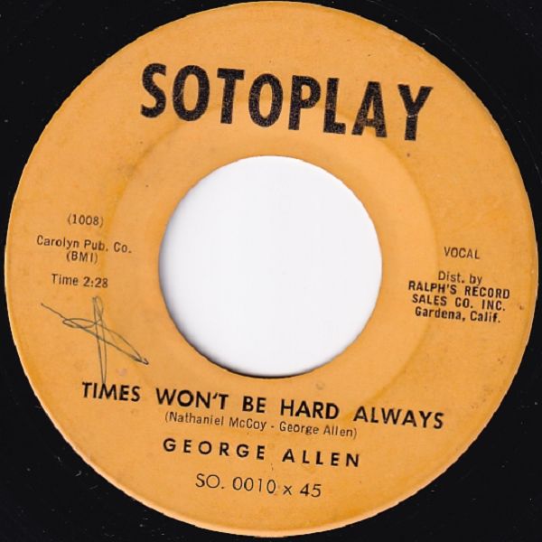 10 60....SO. 0010 x 45....GEORGE ALLEN..Times Won't Be Hard Always (1008)/Tight Dress (1009)