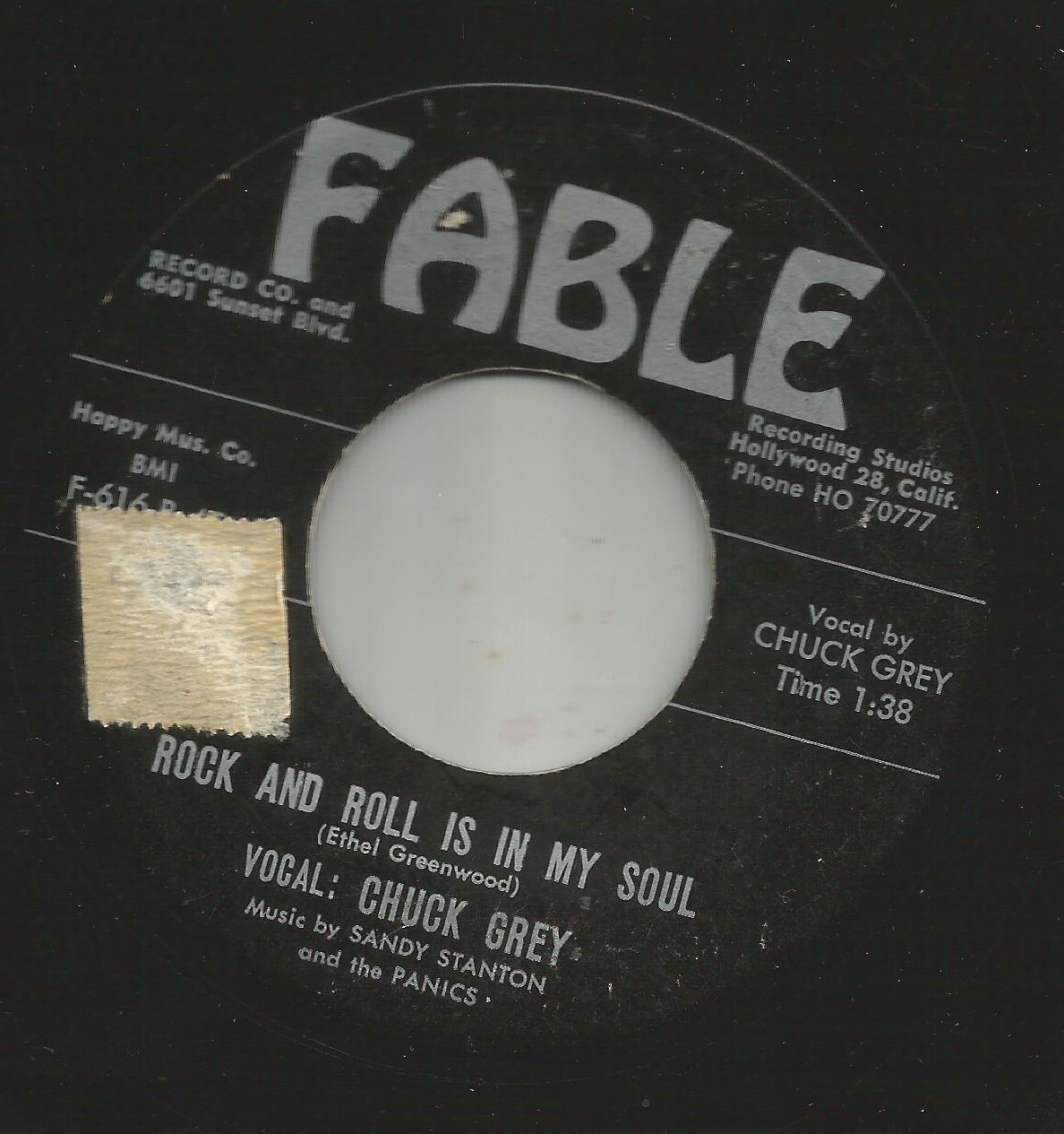 04 58....F-616-A-45....VOCAL: CHUCK GREY Music by SANDY STANTON and the PANICS..Push The Panic Button/-B-45….Rock And Roll Is In My Soul