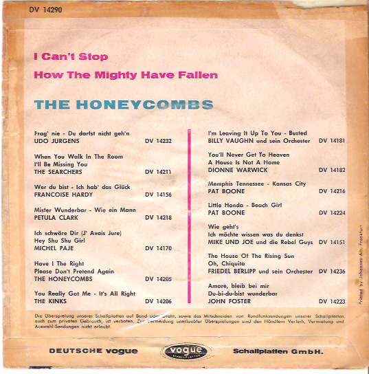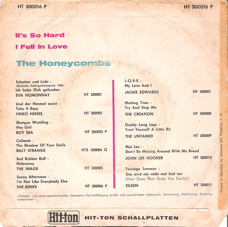 Auch in der einschlägigen Sammler-Literatur und Honeycombs Diskographien habe ich diese Single nicht gefunden. Kann jemand helfen ?