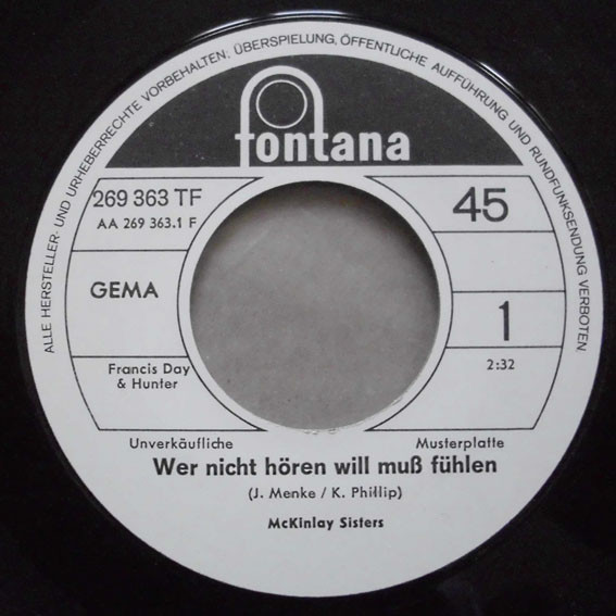 Versionen via Fontana auch in Deutschland als Mc Kinlay Sisters in deutscher Sprache
