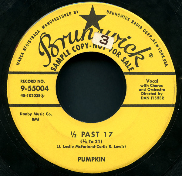 als 'Pumpkin', auf Jupiter 45-3 ("Please Evelina" und "Talihi"; Mai 1957),