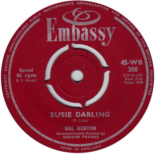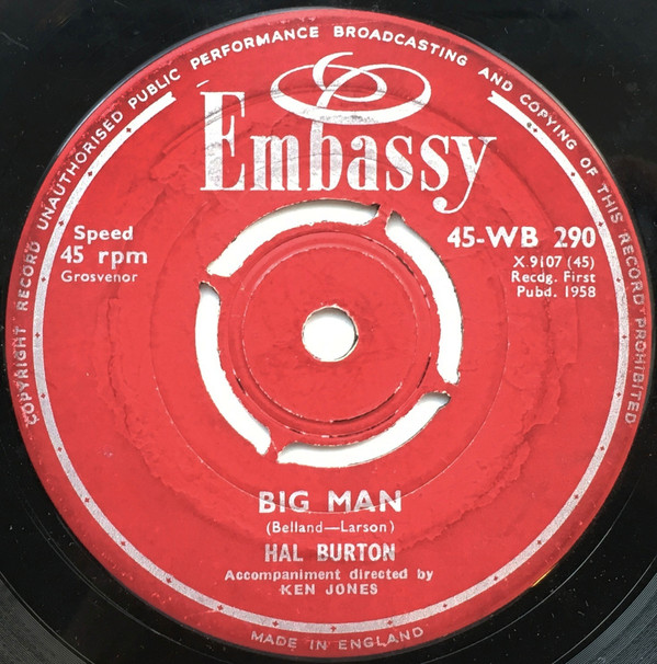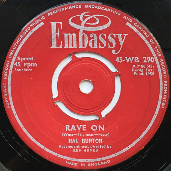 Hier HAL BURTON mit seinen beiden Platten aus Juni 1958 ("Rave On")