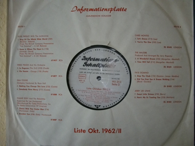 heute möchte ich die Teldec Informationsplatte "Liste Oktober 1962/II vorstellen.