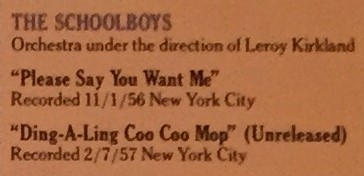 THE SCHOOLBOYS gründeten sich 1954 auf der Cooper Junior High School