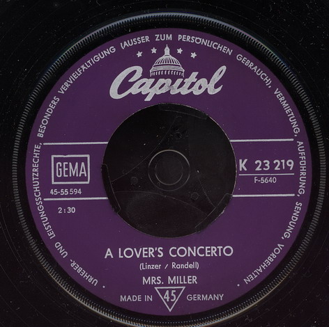 1965 landeten The Toys mit "A lover's concerto" einen Millionseller. Alma Cogan deutschte das Werk in 1966 ein. Beides wunderbare Scheiben.