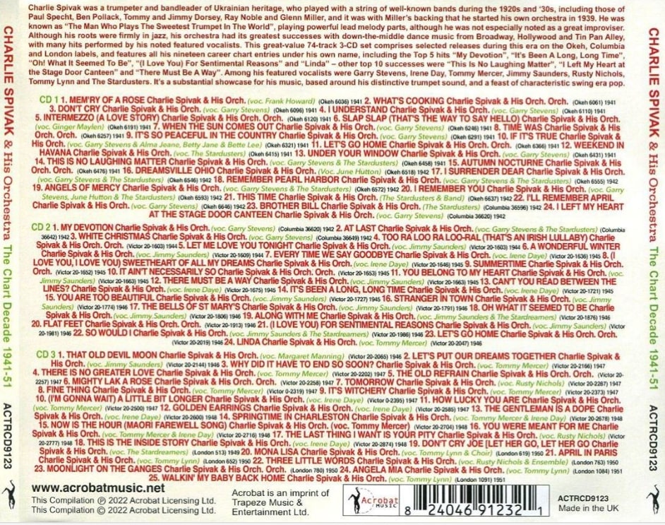 Trotz seiner früheren Arbeit mit einigen der besten Jazzgruppen der Zeit spielte Spivaks Orchester geradlinig, konzentrierte sich auf Balladen und populäre Nummern und verließ sich stark auf Sänger. In den frühen Tagen der Band spielte Spivak, bekannt als „Cheery, Chubby Charlie“, seine Trompete mit Dämpfer und versuchte, einen weicheren Ton zu erzeugen. Später wechselte er zum offenen Trompetenspiel, wofür er große Anerkennung von den Kritikern erhielt. Er war einer der besseren Trompeter der Ära, obwohl er zweifellos von Harry James in den Schatten gestellt wurde. Er gab seinen Dämpfer jedoch erst später in seiner Karriere ganz auf.