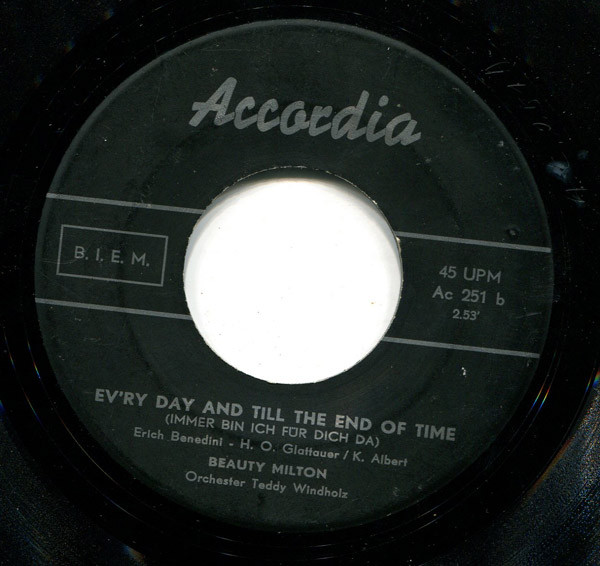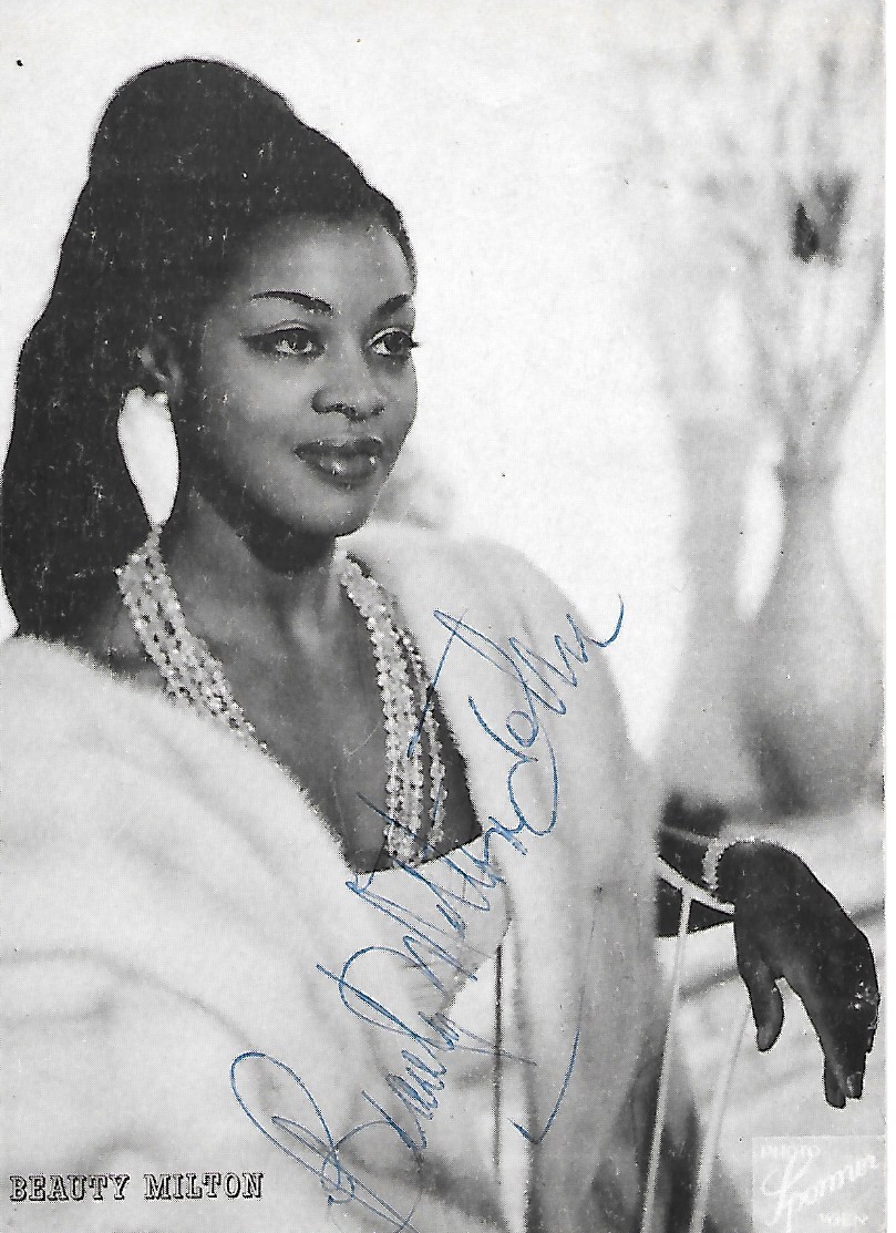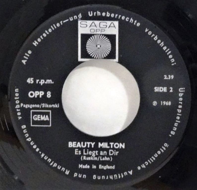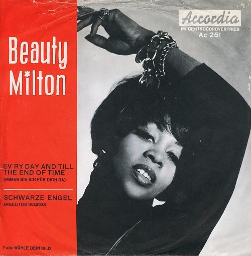 Die farbige US-Amerikanerin hatte eine Ausbildung zur Krankenschwester erhalten und wurde während einer Europareise per Zufall entdeckt, als sie während eines Besuchs in einem Wiener Heurigenlokal spaßeshalber selbst zu singen anfing. Bald begannen sich deutsche Schlagerproduzenten und Fernsehsender für Beauty Milton zu interessieren, und seit 1964 trat sie in einer Reihe von Unterhaltungssendungen wie die Rudi Carrell Show auf, wirkte aber auch als Schauspielerin in Fernsehfilmen mit. Auch in anderen europäischen Ländern wie Belgien, Großbritannien, die Niederlande, die DDR, Skandinavien, Italien, Schweiz, Luxemburg, Frankreich und die Tschechoslowakei absolvierte Milton Gesangsauftritte. Beauty Milton war mit dem deutschen Fußballspieler Wolfgang John verheiratet (Quelle: Wikipedia).
