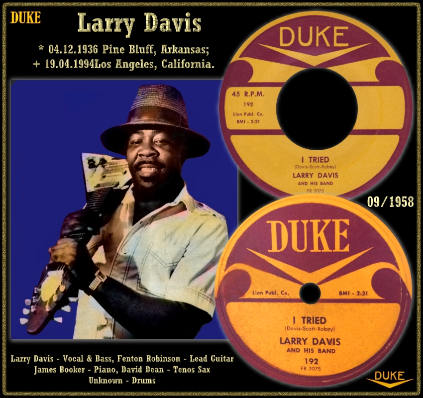 Der Blues-Sänger, Gitarrist und Songwriter Larry Davis wurde am 4. Dezember 1936 in Pine Bluff, Arkansas, geboren und verstarb am 19. April 1994, erst 57-lährig, in Los Angeles, Kalifornien an Krebs. Ursprünlich bediente er das Schlagzeug, sattelte aber Mitte der Fünfzigerjahre auf Gitarrenbass um und bildete mit dem Gitarristen Fenton Robinson, mit dem er schon länger zusammenarbeitete, sowie den Pianisten James Booker, dem Tenor-Saxophonisten David Dean und einen mir namentlich nicht bekannten Schlagzeuger, eine eigene Band. Aufgrund einer Empfehlung von Bobby Bland machte diese Band bei DUKE Einspielungen, was zu drei Single-Veröffentlichungen führte. Danach war er bei Albert King als Bassist tätig und lernte nebenbei das Gitarrespiel. Erst 1968 machte er wieder Solo-Aufnahmen