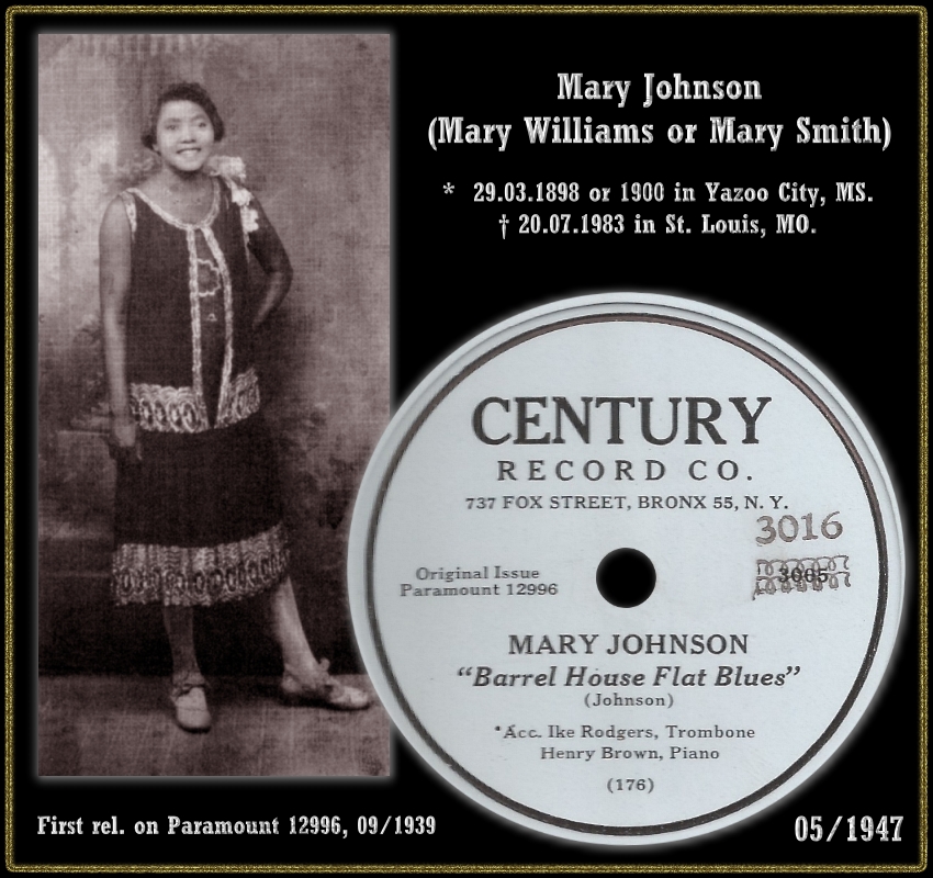 00 29….3016…. MARY JOHNSON..”Barrel house flat blues”/”Key to the mountain blues”