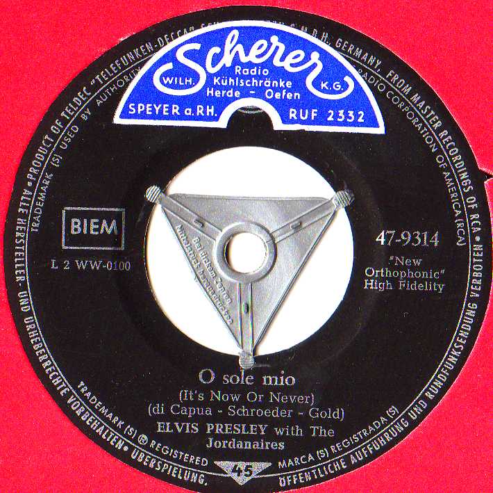 Elvis Presley mit Sticker der Firma Wilh. Scherer K.G. in Speyer.